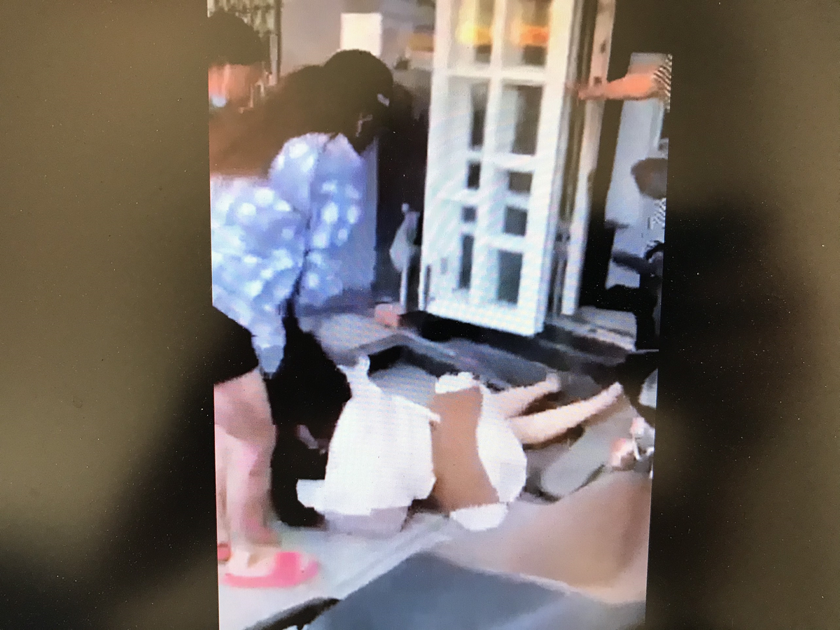 Nhiều người thấy cô gái bị hành hung dã man nhưng không ai vào can ngăn. (Ảnh: Cắt từ clip)