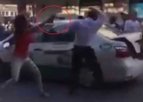 Chiều 14/4 trước cửa Trung tâm thương mại Tràng Tiền, quận Hoàn Kiếm, Hà Nội, cô gái cầm một chai thủy tinh lao vào đập mạnh vào đầu tài xế taxi.
