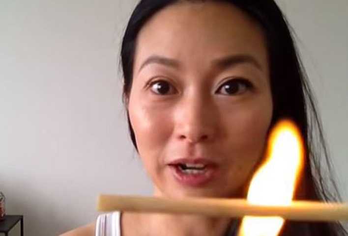 Cô gái Hàn Quốc chia sẻ bí quyết độc đáo để có hàng mi dày cong vút, đó là lấy que gỗ nhỏ, hơ qua lửa sao cho không quá nóng rồi chuốt mi thay vì dùng mascara.