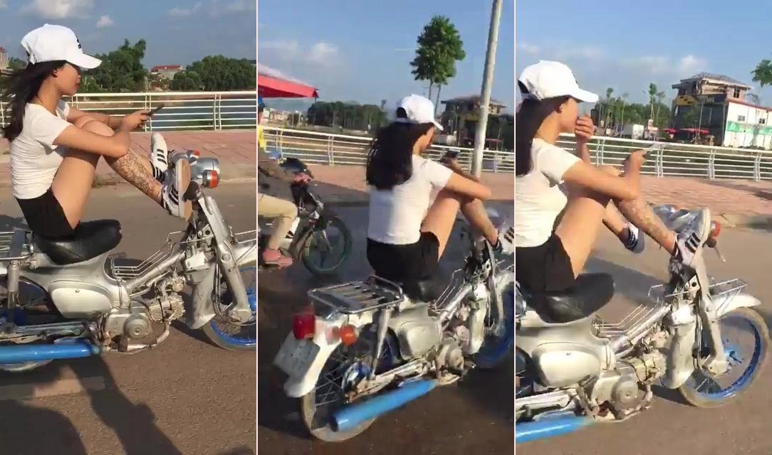 Clip: Cô gái xăm trổ lái xe máy bằng chân gây sốc cộng đồng mạng