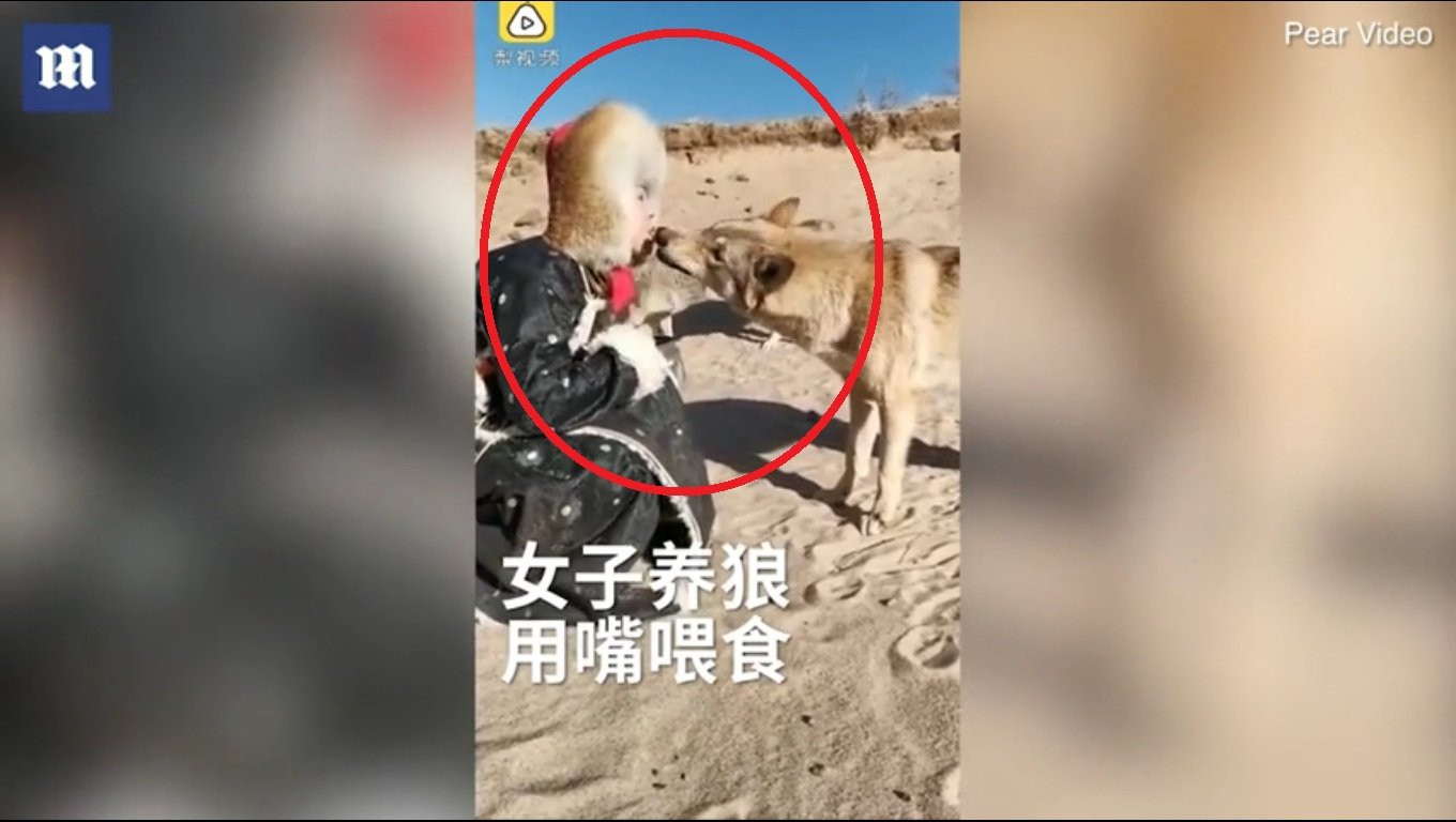 Đoạn video ghi lại hình ảnh Zhou Xinyue (20 tuổi) vui đùa với bầy sói trong lúc cho chúng ăn, còn những con sói thì đang chơi đùa xung quanh và hào hứng lấy miếng thịt từ miệng cô.