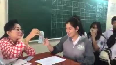 Clip lan truyền trên mạng xã hội ghi lại màn lì xì theo phong cách "Đừng để tiền rơi" tại một trường THCS ở TP.HCM.