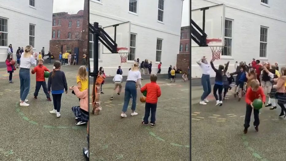 Đoạn video ghi lại cảnh Kathleen Fitzpatrick, giáo viên trường Holy Trinity, Washington (Mỹ) ném trúng bóng vào rổ trong sự hò reo của các học sinh thu hút tới gần 16 triệu lượt xem trên Twitter.