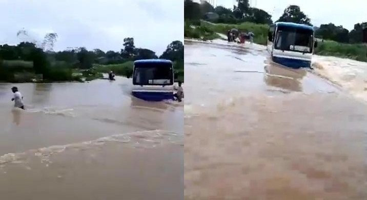 Tài xế liều lĩnh cho xe khách chạy qua đập tràn nhưng nước dâng cao, chảy xiết khiến xe chết máy, mắc kẹt giữa dòng lũ. Thời điểm này, xe đang chở 47 học sinh, tất cả đều hoảng loạn và sợ hãi. Phát hiện vụ việc, người dân địa phương nhanh chóng dùng dây thừng buộc vào gốc tre, đưa 47 em học sinh vào bờ an toàn.