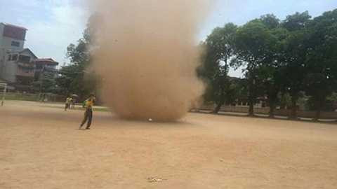 Thông thường lốc xoáy to thường xuất hiện kèm theo mưa giông nhưng cơn lốc xoáy “lạ” này hình thành giữa trưa hè oi bức và ngay giữa sân bóng nhà trường tạo nên cảnh hiếu kỳ với không ít bạn trẻ.