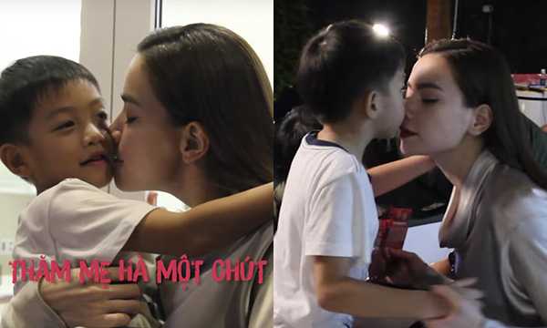 Vừa thấy con trai, Hồ Ngọc Hà đã ôm hôn cậu nhóc tới tấp