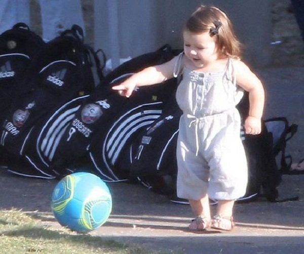 Đây không phải lần đầu tiên người ta bắt gặp hình ảnh cô nàng Harper được bố dạy chơi bóng đá. Hai năm trước, tài năng “bóng đá” của cô công chúa nhỏ cũng đã được bộc lộ qua nhiều lần luyện tập đá bóng trên sân cùng bố và các anh. Bà mẹ Vic từng thú nhận rằng, cô rất đau lòng khi con gái cưng thỏ thẻ muốn…trở thành cầu thủ bóng đá khi lớn lên.