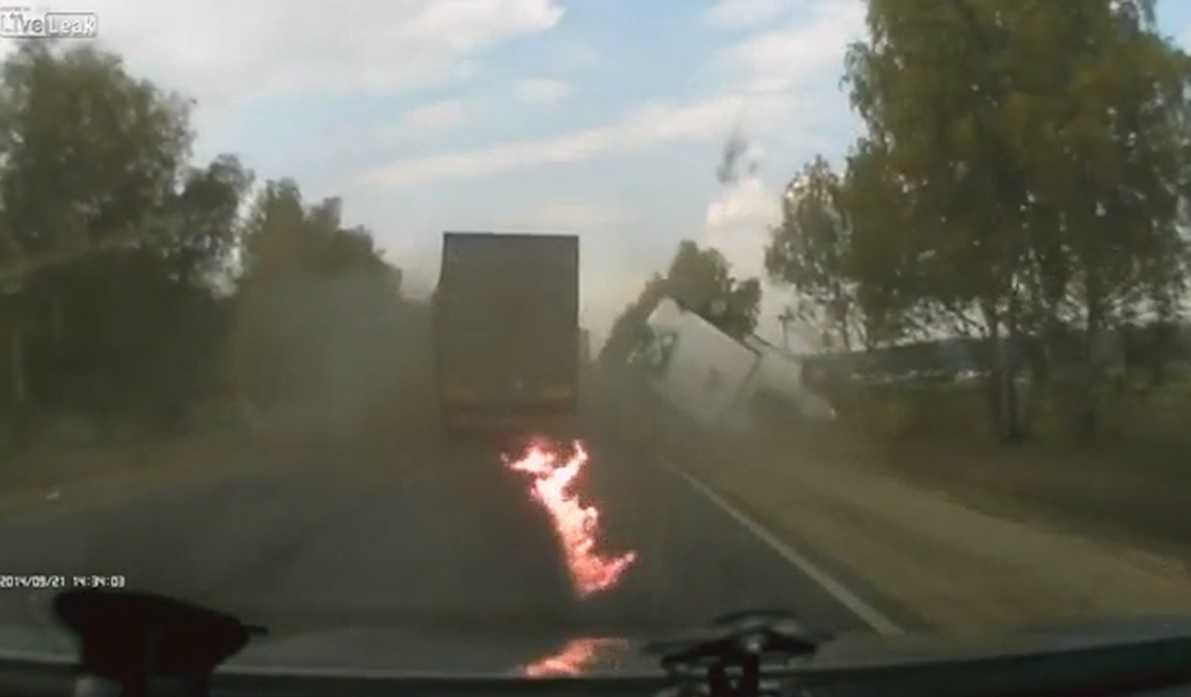 Clip: Container phanh cháy lốp tránh tai nạn kinh hoàng