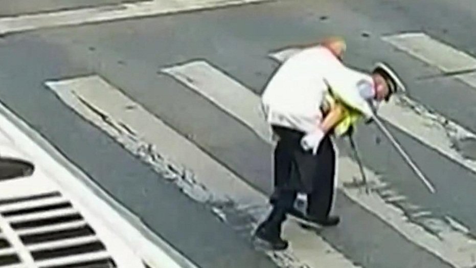 09/06/2018 07:29:00 +07:00Cụ ông chống gậy sang được nửa đường thì đèn tín hiệu thay đổi, nam CSGT ở TP Miên Dương (tỉnh Tứ Xuyên, Trung Quốc) lập tức chạy tới, cõng cụ ông qua đường an toàn.