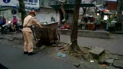 Facebook Nguyễn Hải bình luận: "Em thấy đường đã bé rồi mà cứ giờ cao điểm là các cô lao công lại lôi xe rác đi gom và có khi còn dàn 2 hàng dưới lòng đường càng thêm tắc".