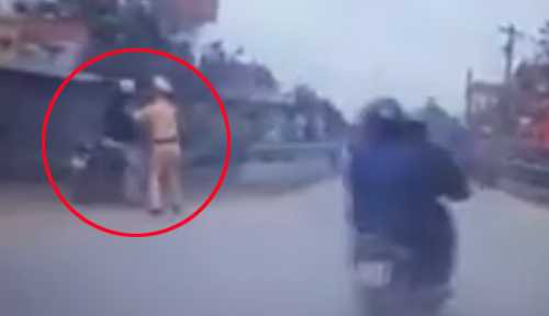 Vụ việc xảy ra vào ngày 24/12 tại xã Yên Phú, Yên Mỹ, Hưng Yên. Người đàn ông ngoan cố bỏ chạy bị CSGT kéo lại, cả người và xe cùng ngã xuống đường, suýt chút nữa bị một xe máy khác đâm trúng.