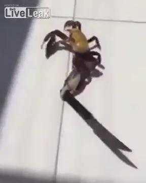 Chú cua nghênh ngang dùng càng quắp con dao khua loạn xạ bên ngoài một cửa hàng ở Brazil khiến người đi đường hoảng sợ.