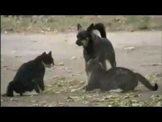 26/12/2012 04:28:00 +07:00(VTC News) - Hai con mèo gầm gừ rồi lao vào đánh nhau nhưng không lâu sau với sự xuất hiện của chú chó đã làm cuộc chiến phải dừng lại.