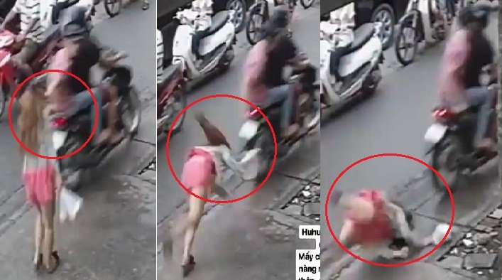 Clip: Cướp giật dây chuyền làm cô gái ngã sấp mặt trên vỉa hè Sài Gòn