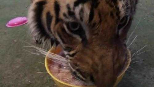 | Chú hổ đói chạy thục mạng đến bát thức ăn. Xem Clip |