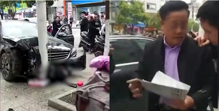 Sự việc xảy ra tại TP Vĩnh Châu, tỉnh Hồ Nam, Trung Quốc. Clip hiện trường tai nạn được quay bằng điện thoại cho thấy chiếc Mercedes-Benz đâm vào cột đèn, biến dạng đầu xe, thi thể người phụ nữ xấu số nằm giữa đầu xe và cột đèn.