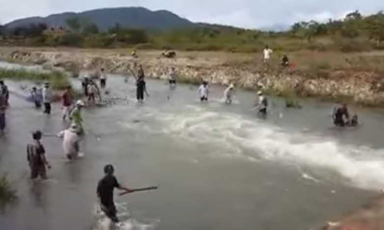 Theo tìm hiểu của phóng viên, chiều 14/12, hàng chục người dân ở xã Hồng Sơn, huyện Hàm Thuận Bắc (Bình Thuận) đổ xô ra bên bờ hồ Suối Đá để bắt cá. Dụng cụ dùng để đánh bắt bằng kích điện, lưới, thậm chí gậy gộc… Loại cá mà người dân bắt được là cá mè đầu búa.