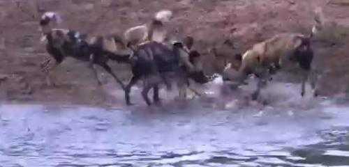 (VTC News) - Đàn chó hoang quần thảo trên bờ làm cho con mồi kiệt sức rồi lao vào xé xác.