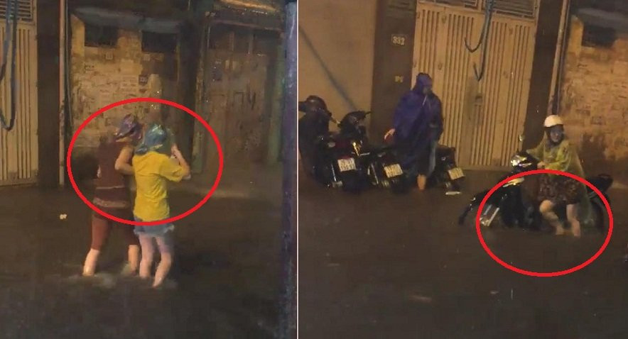 Clip: Dân Thủ đô bì bõm lội nước, dắt xe máy đi bộ qua đường ngập