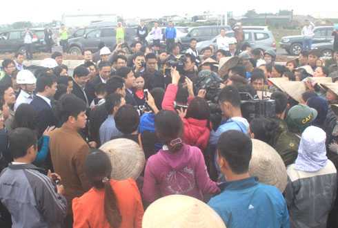 Hàng chục người dân thôn Sơn Du thuộc xã Nguyên Khê, huyện Đông Anh (Hà Nội) ùa đến vây quanh Bộ trưởng Giao thông Đinh La Thăng khi ông đang kiểm tra thi công trên tuyến đường Nhật Tân - Nội Bài đề nghị Bộ trưởng giải quyết làm hầm đường bộ qua cao tốc thuận tiện cho người dân và đền bù cho 300 hộ dân bị nứt nhà vì thi công dự án.