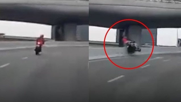 Tai nạn xảy ra ngày 7/5 tại Thượng Hải, Trung Quốc. Xe máy bị cấm tại mọi cao tốc trên cao ở Thượng Hải nhưng không hiểu sao người đàn ông vẫn chạy xe máy vào.