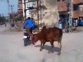 Clip: Đi xe máy bị 4 con bò điên cuồng truy đuổi