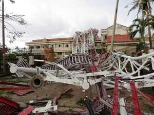 (VTC News) - Thiệt hại về người và vật chất kinh hoàng nhất trong bão số 10 là sự cố đổ cột thu phát sóng tầm trung của Đài Tiếng nói Việt Nam tại TP Đồng Hới, Quảng Bình, làm 2 người chết tại chỗ và 1 người trọng thương vào thời điểm bão đổ bộ chiều 30/9.