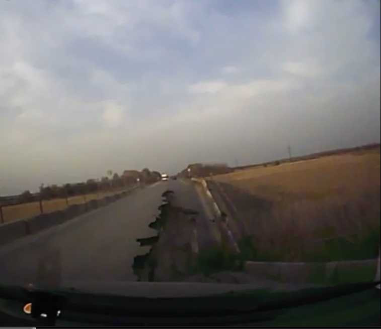 (VTC News) - Chiếc xe hơi may mắn kịp dừng lại khi phát hiện phần đường võng xuống phía trước, ngay sau đó cả đoạn đường bất ngờ rạn nứt và lún sụt.