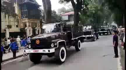 Để chuẩn bị cho lễ quốc tang tiễn đưa linh cữu Đại tướng Võ Nguyên Giáp về quê hương Quảng Bình, sáng 10/10, đoàn xe đã tiến hành diễn tập trên lộ trình từ nhà tang lễ ra sân bay Nội Bài. Đoạn video ghi hình ảnh đoàn xe trên phố Hoàng Diệu, nơi người dân vẫn tiếp tục đổ về.