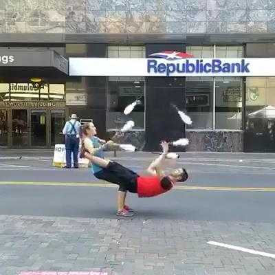 Clip: Đôi nam nữ tung hứng nghệ thuật chưa từng thấy