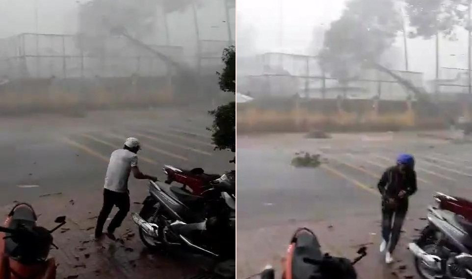 Clip: Dông lốc khủng khiếp quật ngã cây xanh, nhiều người cuống cuồng tháo chạy