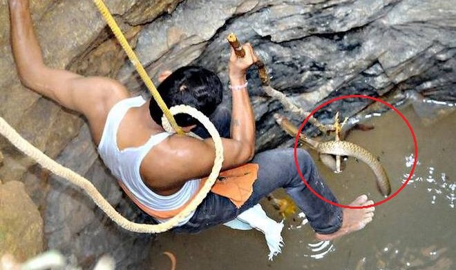 Sự việc xảy ra tại miền nam Ấn Độ. Con rắn hổ mang sau đó được bắt vào túi rồi thả vào một khu rừng gần đó.