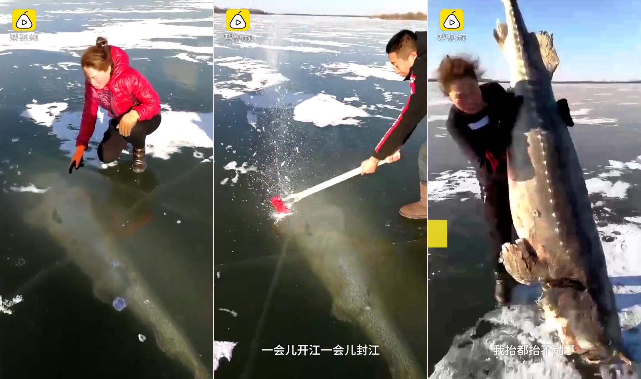 Người đàn ông dùng rìu bắt cá khủng trên một dòng sông băng ở Trung Quốc khiến người xem kinh ngạc.