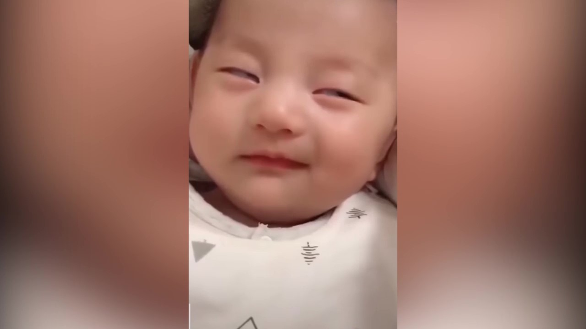 Đang mơ ngủ, em bé đá lông nheo rồi cười mỉm khiến người xem clip không khỏi bật cười vì quá đáng yêu.