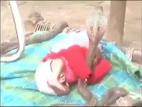 Clip: Em bé ngủ cùng 4 con rắn hổ mang