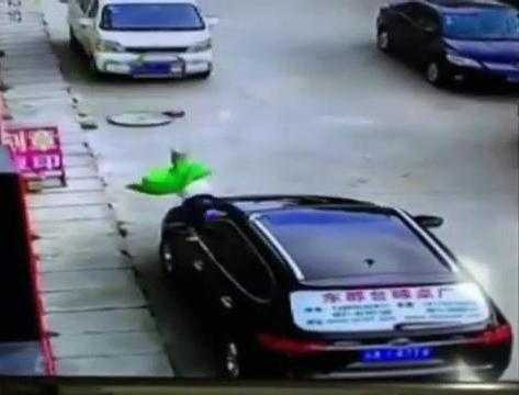 Em bé rơi từ trên nhà cao tầng xuống trúng ô tô rồi văng xuống đất nhưng ngay sau đó đứng dậy và chạy đi.