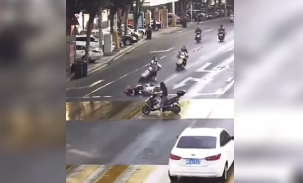 Clip: Gái xinh khiến cả loạt xe máy ngã nhào