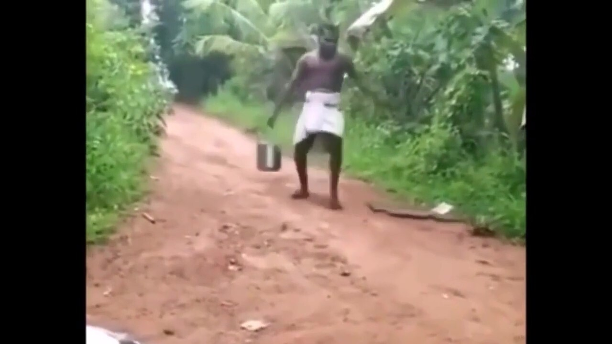 Đang hùng hổ đi đến chỗ đám bạn, người đàn ông hoảng hồn nhìn thấy con rắn, anh ta ngã dúi dụi mãi mới có thể đứng dậy bỏ chạy thoát thân.