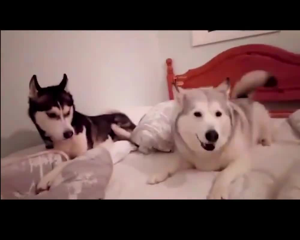 Cuộc cãi vã hài hước giữa đôi chó Husky khiến người xem không nhịn được cười.