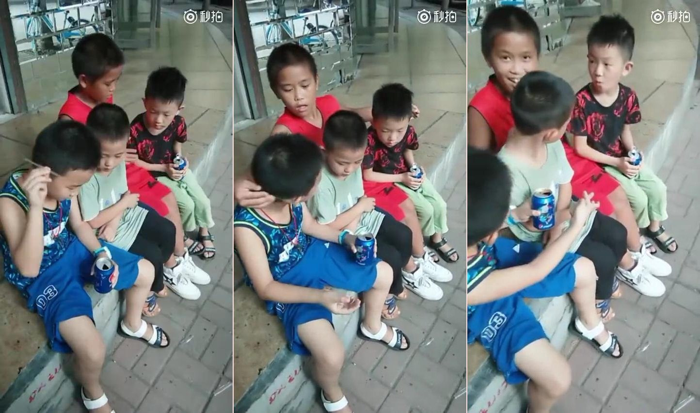 Bé trai áo xanh thực hiện trò ảo thuật đơn giản không ngờ với sự trợ giúp của bé trai áo đỏ khiến 2 người bạn còn lại choáng, còn người xem thì bấm bụng cười.