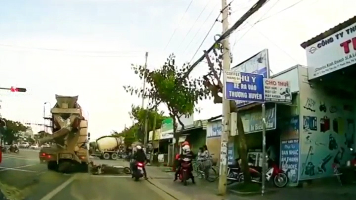 Clip: Hãi hùng cảnh xe bồn tông ô tô và xe máy chờ đèn đỏ ở Vũng Tàu