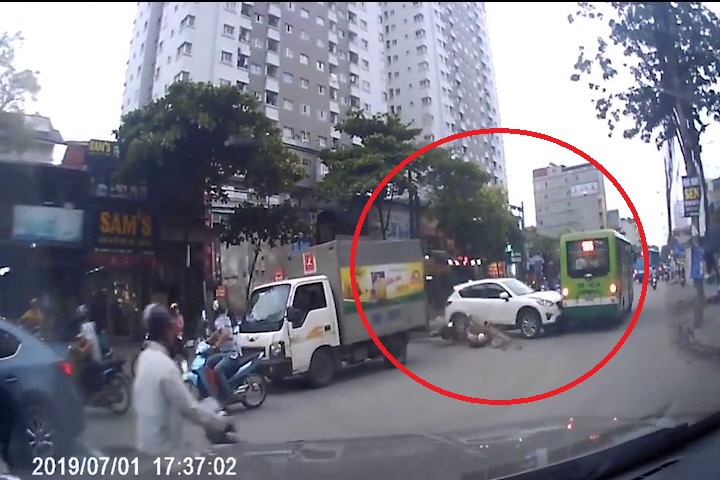 Clip: Hãi hùng cảnh xe CX5 hóa 'xe điên', tông cả loạt xe máy khi băng qua đường ở Hà Nội
