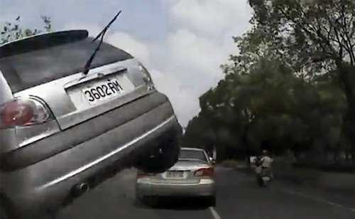 Clip: Hãi hùng ô tô 'bay' thẳng vào xe ngược chiều