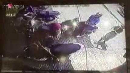 Hình ảnh camera an ninh của cửa hàng cho thấy, sau khi bị hai nam thanh niên lạ mặt tạt axit trưa 30/3 trên đường Quang Trung, quận Gò Vấp (TP HCM), hai nữ sinh vùng vẫy chạy vào lề đường, lột găng tay, khẩu trang, áo khoác... xin nước để rửa vết bỏng rát.