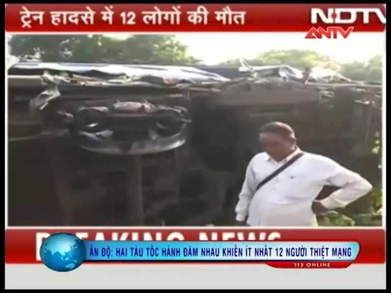 (VTC News) - Cảnh sát Ấn Độ ngày 1/10 cho biết ít nhất 12 người đã thiệt mạng và nhiều người khác bị thương nặng khi 2 đoàn tàu tốc hành đâm nhau trong đêm 30/9 ở Gorakhpur thuộc bang Uttar Pradesh, miền Bắc Ấn Độ. ANTV
