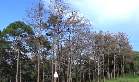 Gần 400 cây thông quen đường Hồ Chí Minh (xã Trường Xuân, Đắk Song, Đắk Nông) bị kẻ xấu đầu độc bằng hóa chất dẫn đến chết.
