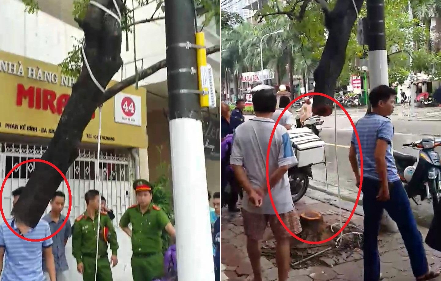 Clip: Hiện trường oái oăm vụ kẻ gian cưa trộm cây sưa đỏ trên phố Hà Nội