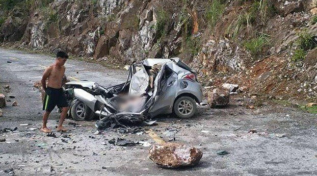 Đang đỗ ven đường, chiếc ô tô 4 chỗ ở Lai Châu bất ngờ bị tảng đá từ trên núi lăn xuống đè bẹp, lái xe không kịp thoát ra ngoài, thiệt mạng tại chỗ.