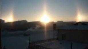 (VTC News) - Hôm 18/1, người dân Mông Cổ được chứng kiến hiện tượng quang học hiếm có, ảo ảnh ba Mặt Trời đang cùng xuất hiện trên bầu trời.
