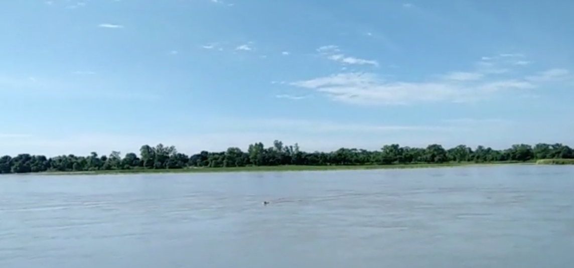 Sự việc xảy ra ngày 8/8 tại làng Katarnia, Ấn Độ, gần biên giới với Nepal. May mắn không ai bị thương. Theo dân làng, thỉnh thoảng những con hổ lại bơi qua sông vào làng để kiếm thức ăn.
